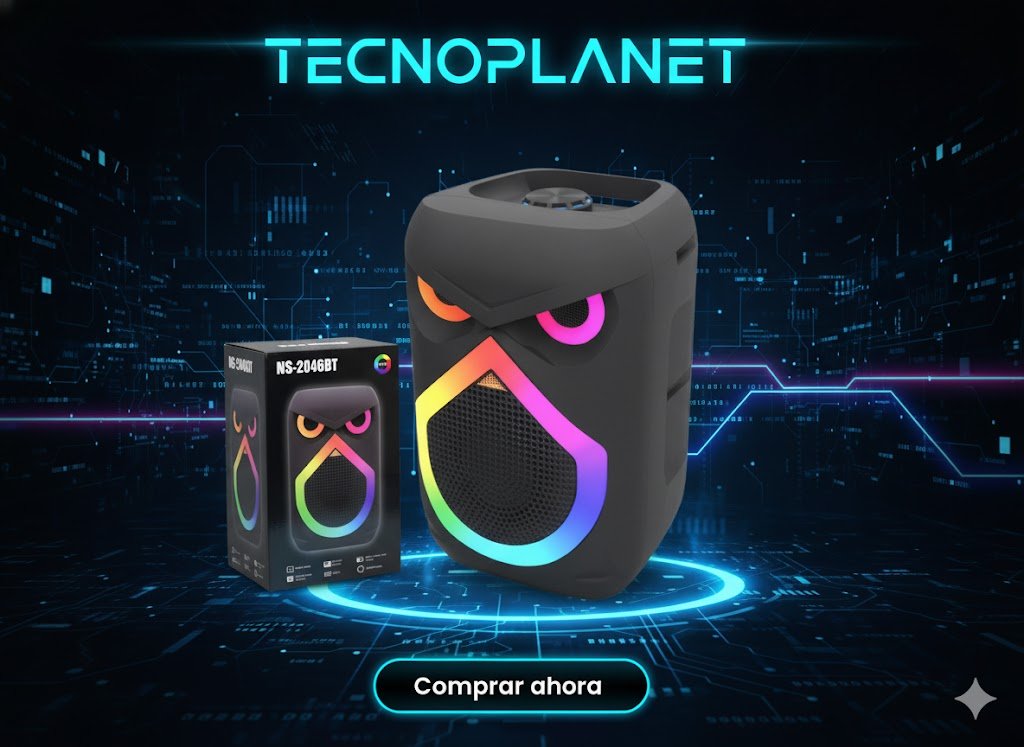 - Sonido Potente: Audio nítido y de gran volumen, ideal para animar cualquier reunión o espacio.